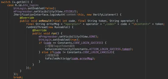 3. 获取到一键登录的loginToken后,提交给服务端,去极光换取手机号码,然后就可以用这个手机号码来登录了。如果号码没有注册过,我们的服务端会以该手机号码自动注册账号。