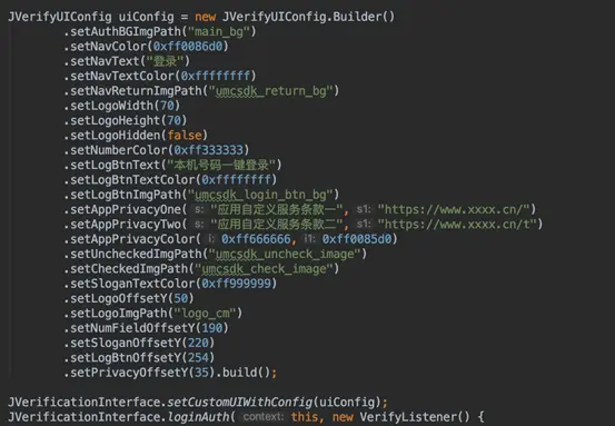 c) 如果你不喜欢默认的登录页面,极光SDK中提供了自定义页面的接口,可以按照自己设计稿来修改UI