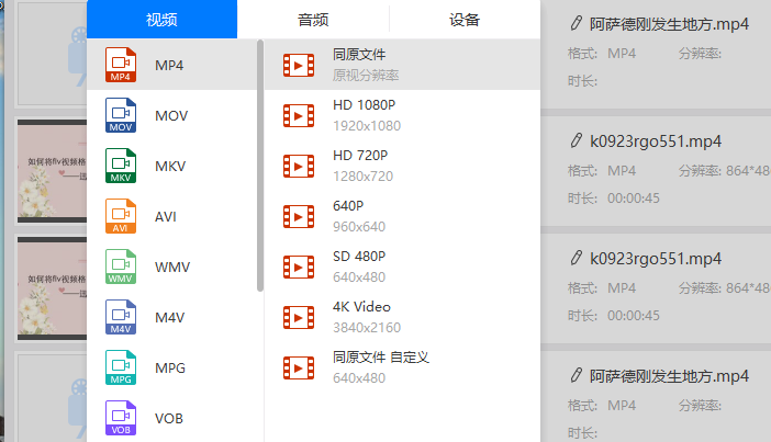3、然后就可以选择转换视频的格式了。因为是要将flv格式转换成mp4格式,所以并不需要当心没有修改转换格式,因为软件默认输出mp4格式,当然如果需要转换其他的音频或者视频格式,还是需要修改的。