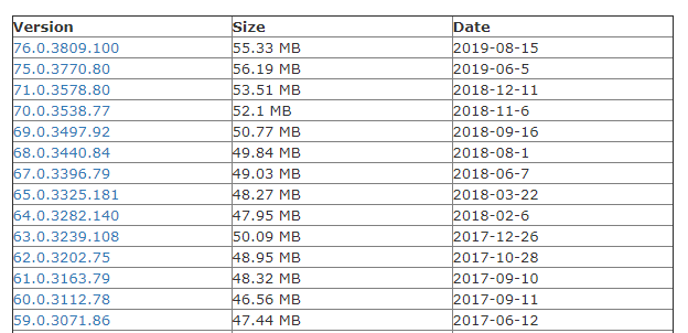大家都知道,Google Chrome 浏览器的迭代速度非常快,截个图大家感受一下(这些都是 release 的正式版本)。版本号用了 9 位数字表示,可想而知迭代的频率有多快。