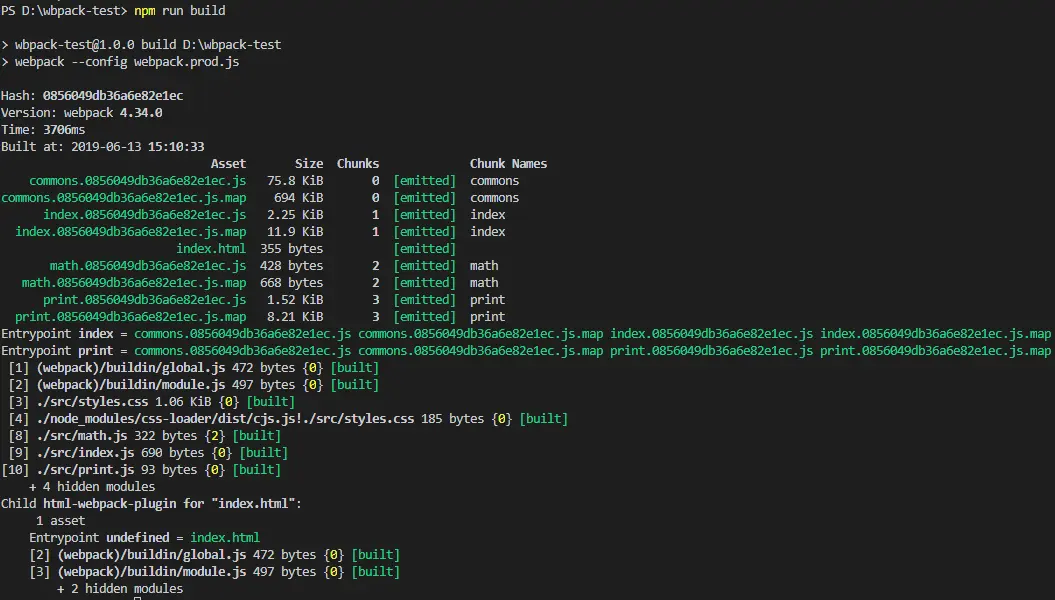 还是用命令提示符进入到webpack-test目录,然后运行命令: