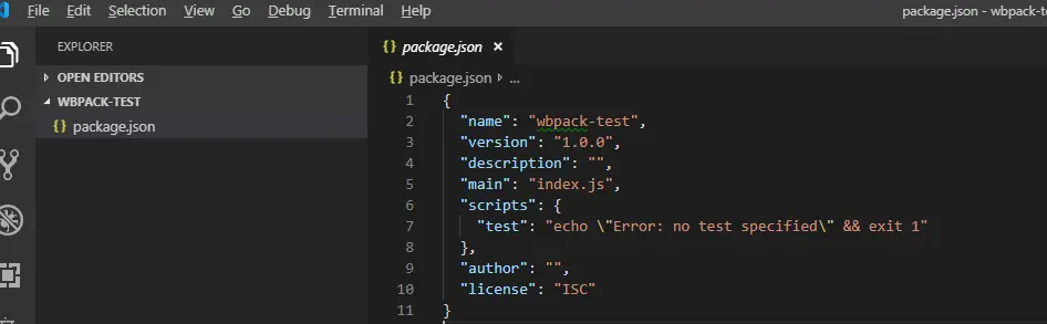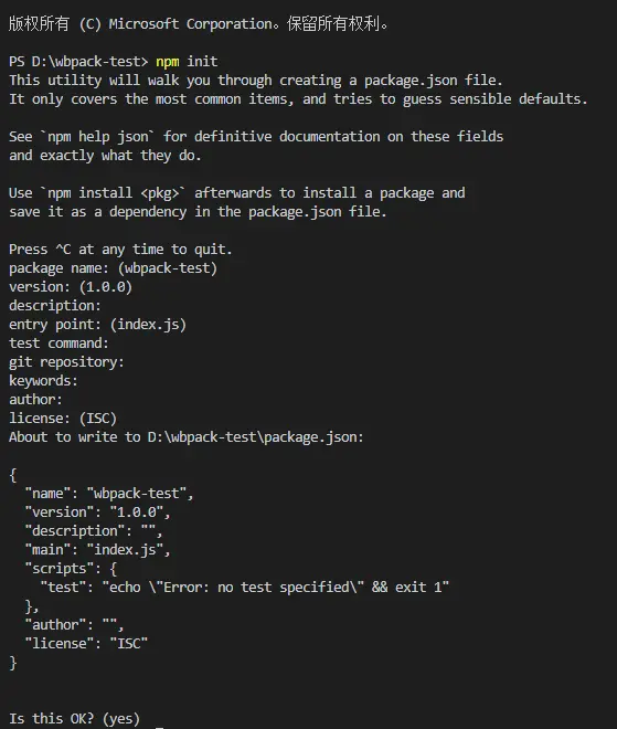 用来记录项目操作流程的package文件有了之后,就要进入正题了,如果之前没有退命令行的webpack-test目录的话,执行命令