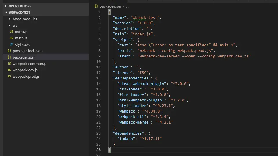 "start": "webpack-dev-server --open --config webpack.dev.js",