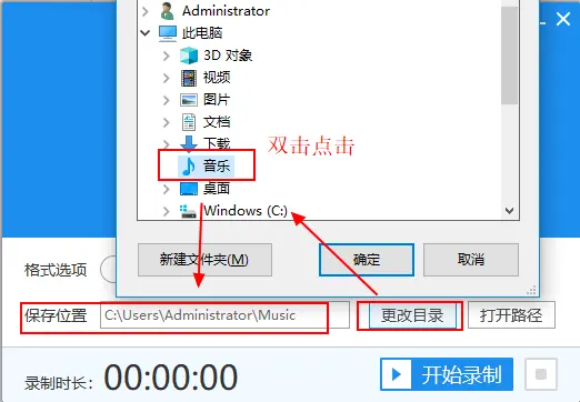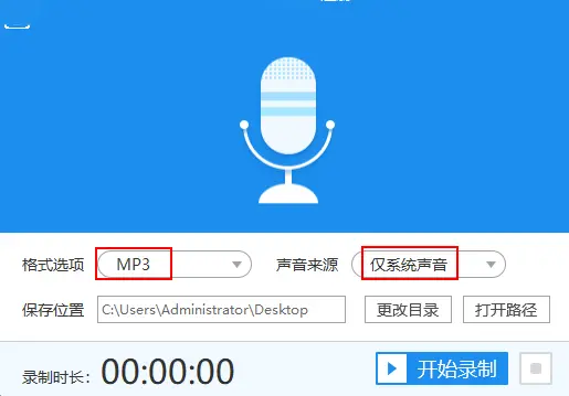 2、在软件功能界面找到保存位置点击“更改目录”可以自定义音频录好后的保存地点。