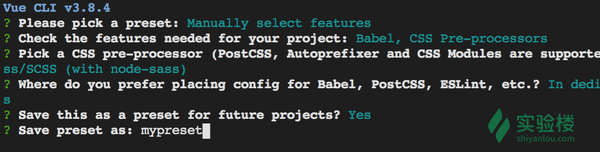 5.Save this as a preset for future projects? 选 yes ,并填写一个名字,以后的 Vue 项目就可以继续使用这个配置