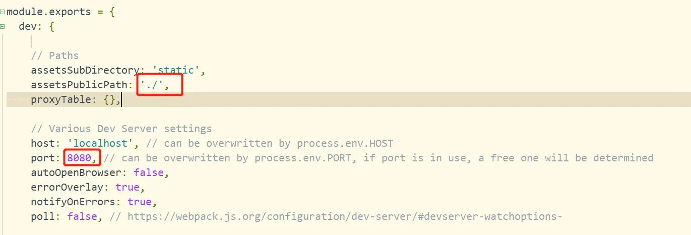 修改端口号是为了防止端口号被占用,修改assetsPublicPath属性是因为打包后,外部引入js和css文件时,如果路径是以