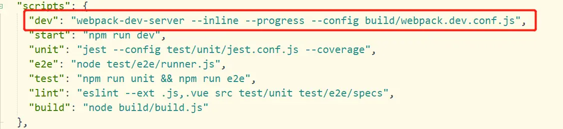 - 可以看到dev中的设置,build/webpack.dev.conf.js,该文件是开发环境中webpack的配置入口。