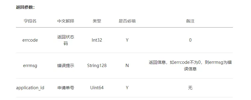 调用申请接口成功后,会返回一个application_id: