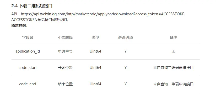 公众号申请一物一码功能通过之后就可以进行二维码的申请及获取了。这里附上微信公众号一物一码接口文档。