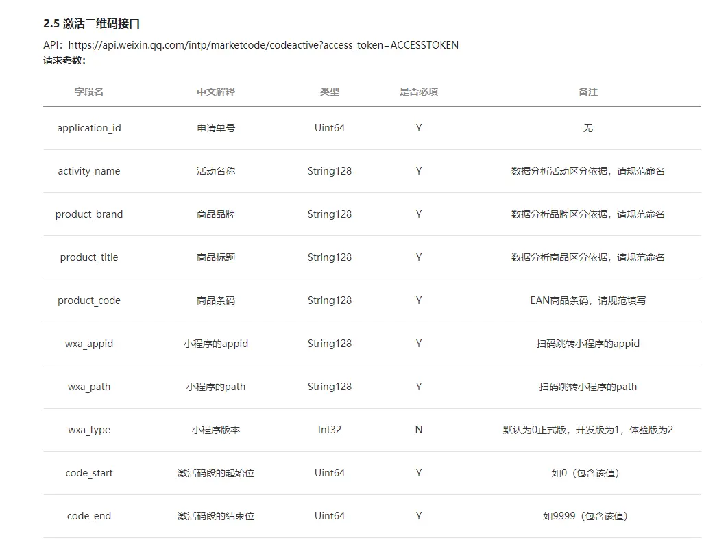 二维码的激活可以多次重复激活,建议在批量印刷前先拿到几个样码单独激活给开发人员测试用,等到投入生产在重新激活。激活二维码接口如下:
