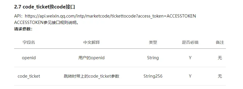 然后再通过wx.login方法以及jscode2session方法拿到扫码用户的openid,用这两个参数调用公众号的tickettocode接口: