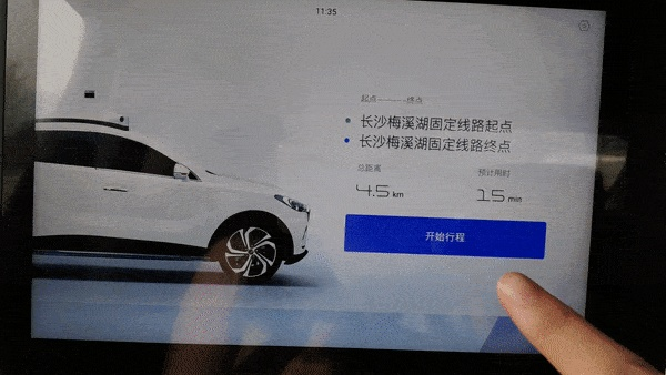 上车后,后座的屏幕上会显示行程的起点和终点,只要点击屏幕上的“开始行程”按钮,车子就会准备开启自动驾驶。