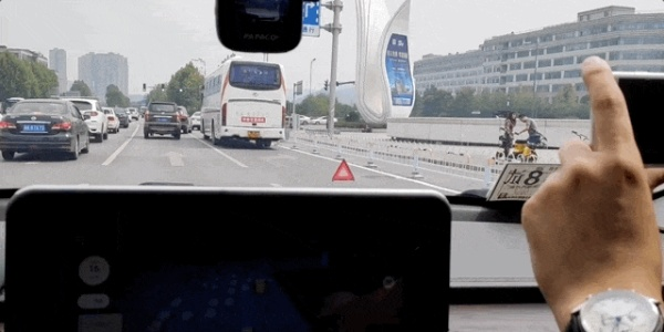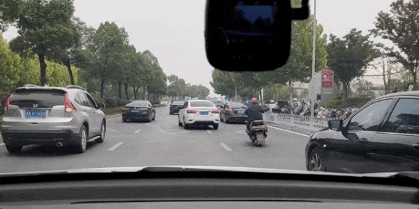 路上车多的时候,自动驾驶车辆也是秉持着遵守交通规则的原则,礼让周围超车的车辆,在摩托车和众多人类驾驶的车辆之间保持绅士风度。