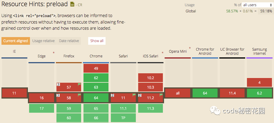 目前我们支持的浏览器主要为高版本 Chrome,所以可放心使用 preload 技术。其他环境在 caniuse.com 上查到的支持情况如下: