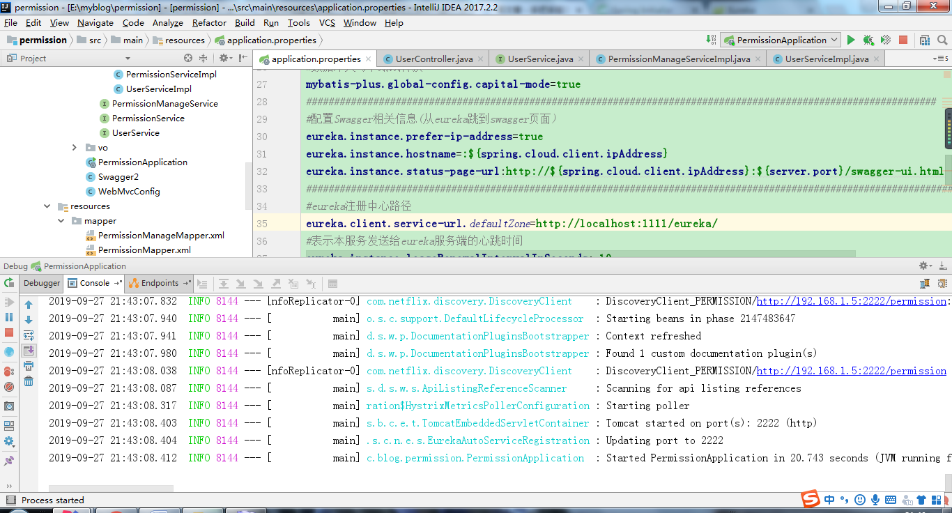 点击:http://192.168.1.5:2222/permission,可以进入到swagger页面,如下图所示