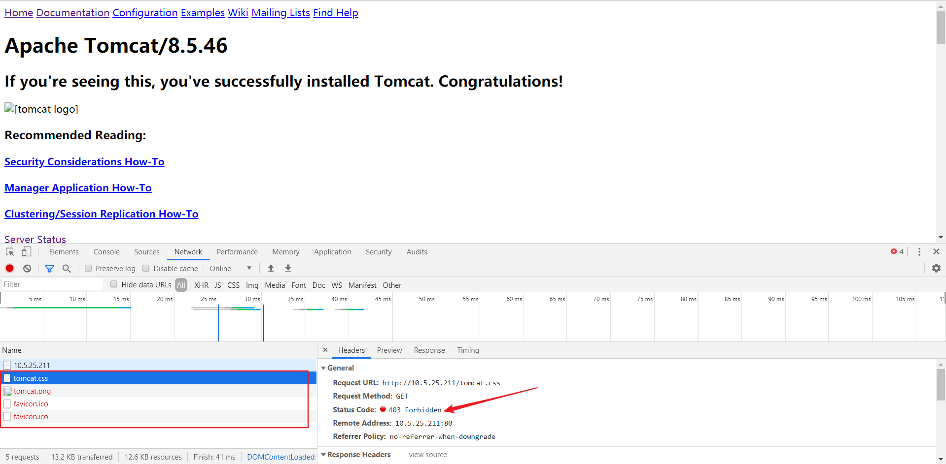 按F12打开调试,发现png/css/ico都没过来,错误是403 Forbidden……