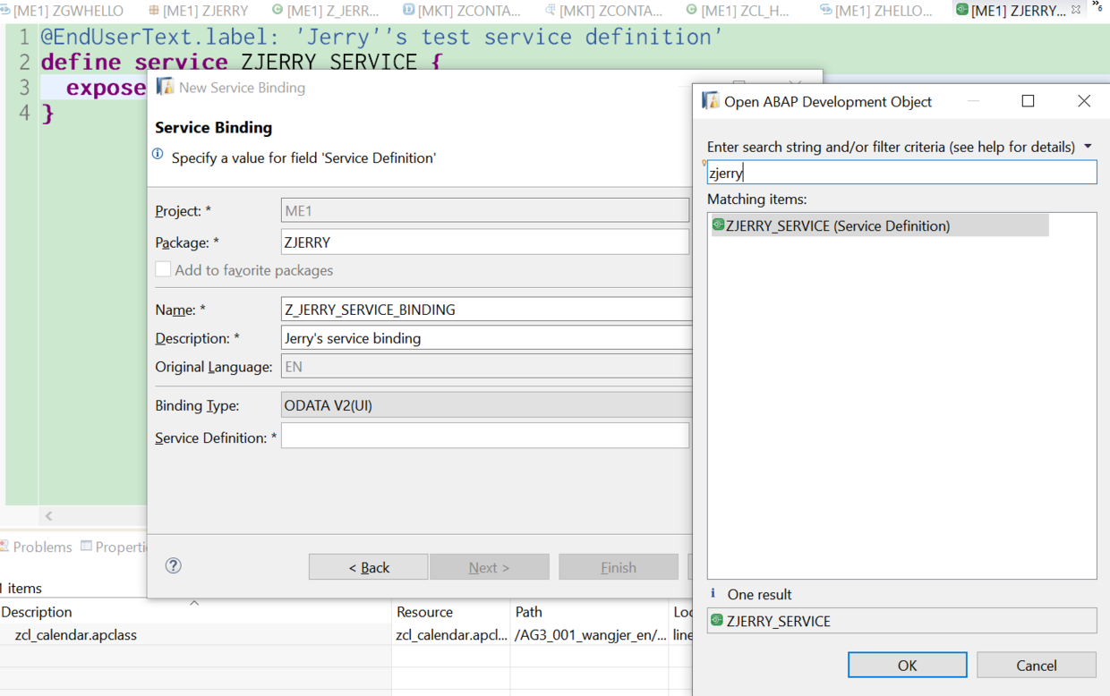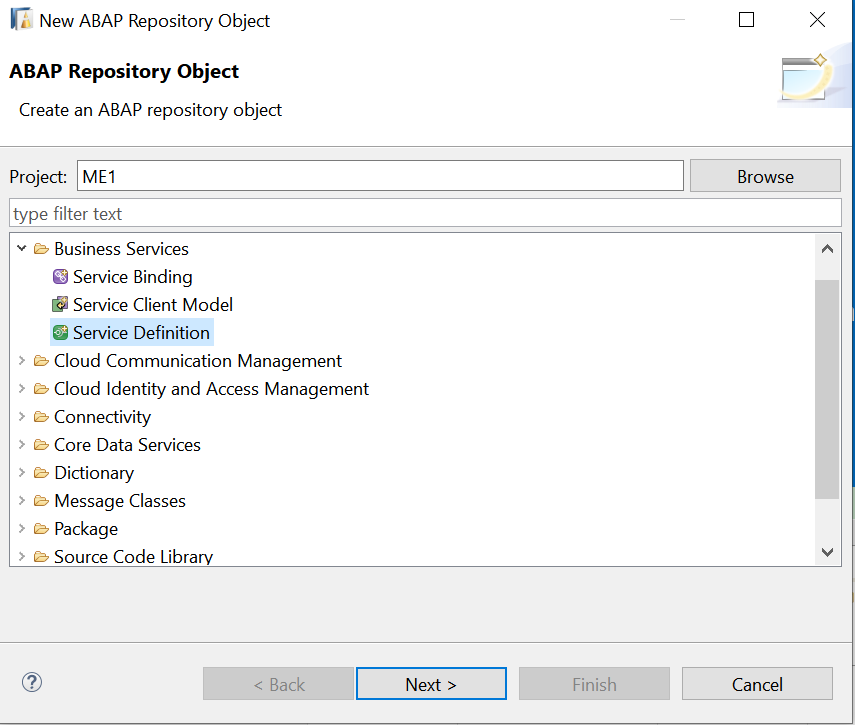 用ABAP Development Tools像登录On-Premises ABAP系统那样登录ABAP云环境,新建一个Service definition: