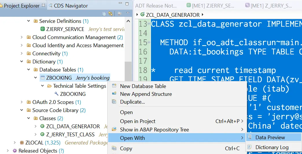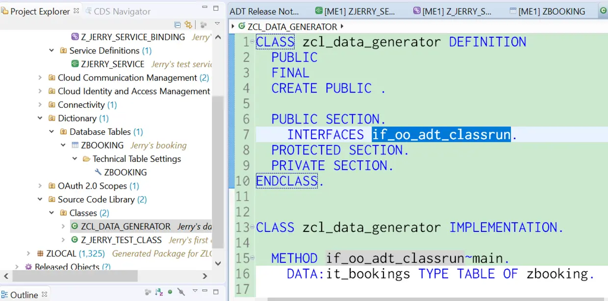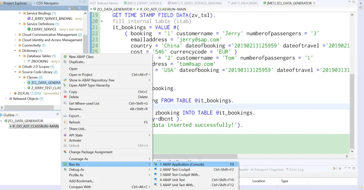 下一步,创建一个ABAP类,以代码的方式往Z表里插入数据。