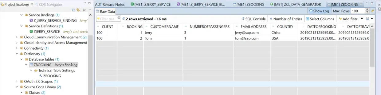 ( booking = '1' customername = 'Jerry' numberofpassengers = '3'