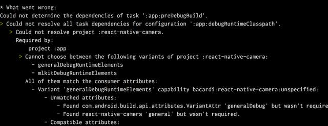 Could not resolve project: react-native-camera