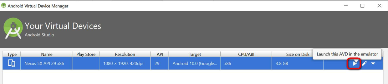 用AVD manager启动一个模拟器: