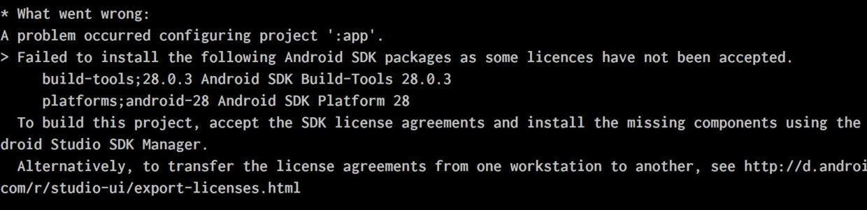 Failed to install the following Android SDK packages as some licences have not been accepted.