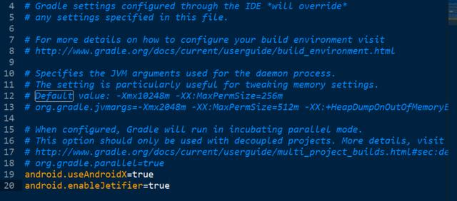编译错误。在应用的android文件夹的gradle.properties配置文件里,增加下面两条配置记录: android.useAndroidX=true android.enableJetifier=true