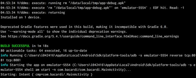 然后重新执行react-native run-android, 就能将应用安装到模拟器上了。