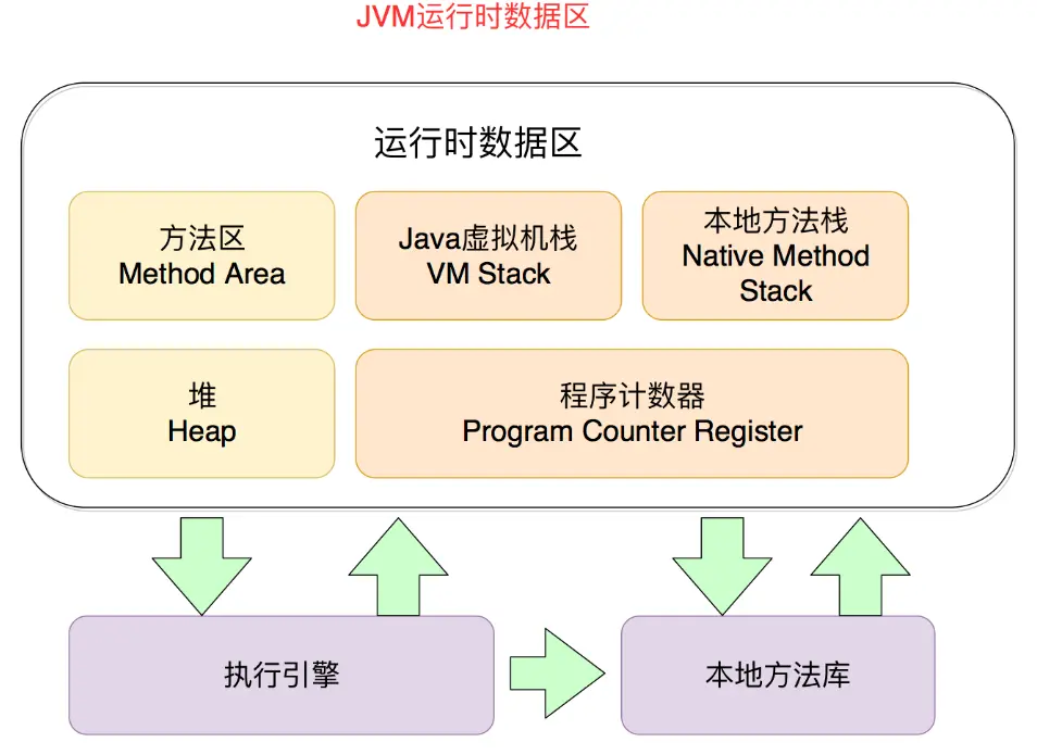 - 线程私有数据区: 程序计数器、虚拟机栈、本地方法堆