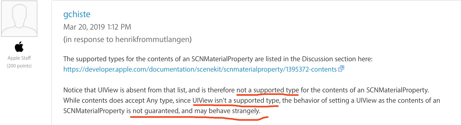 苹果官方目前(至 iOS13)都并不推荐贴图使用 UIView 类,可能会有潜在的布局问题,内存问题等。苹果论坛上官方员工的回复forums.developer.apple.com/message/340…