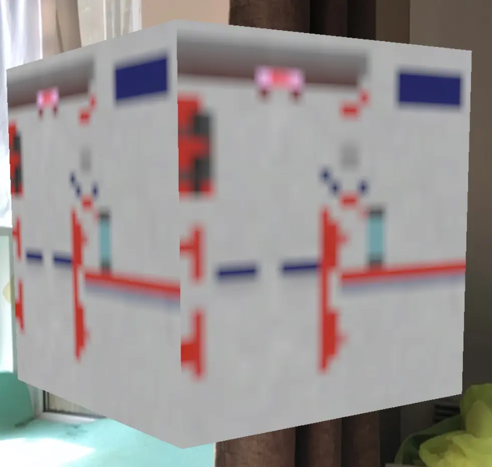 UIImageView 的贴图方式是根据 Frame 的值进行的。比如 x 与 y 的偏移量会影响贴图的原点。而 size 则决定了清晰度,当 size 为width: 30, height: 30 时,而立方体宽高 1 米时效果如下。