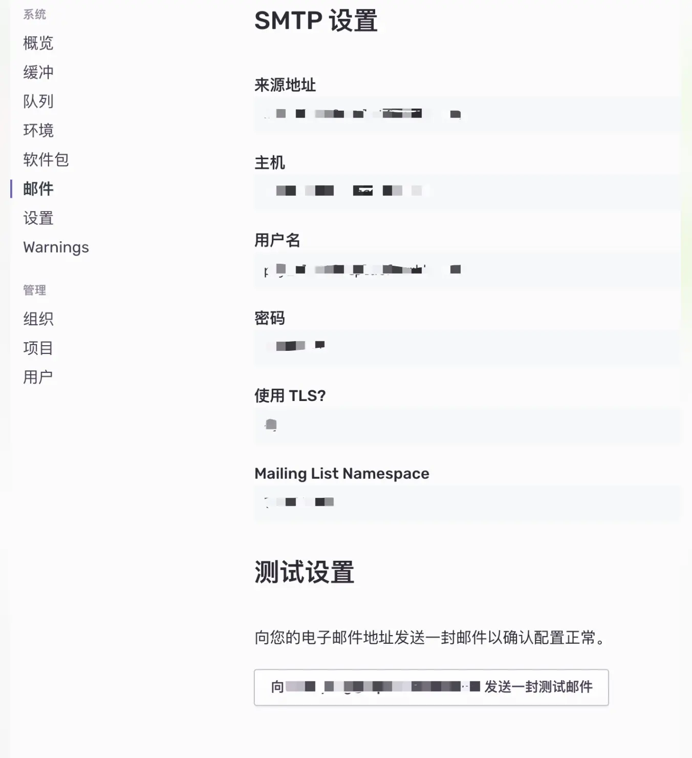 docker-compose up -d启动完毕网页访问服务器的9000端口,能够看到sentry后台,登录进去,查看邮箱配置,检查邮件是否能够正常发出