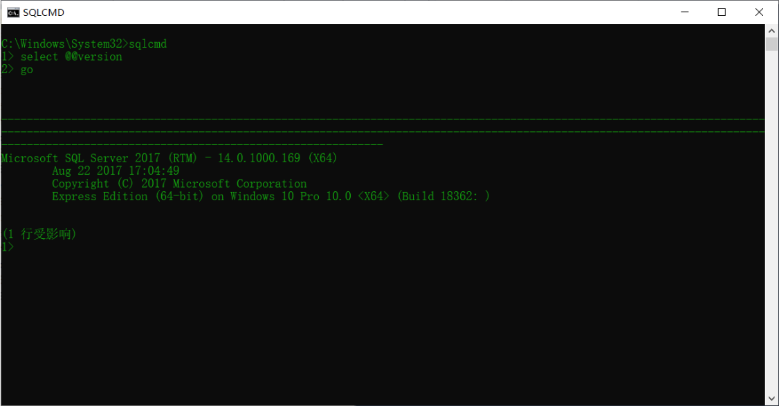 1>是sqlcmd提示符,用于指定行号。每次按ENTER,数字都会增加1。