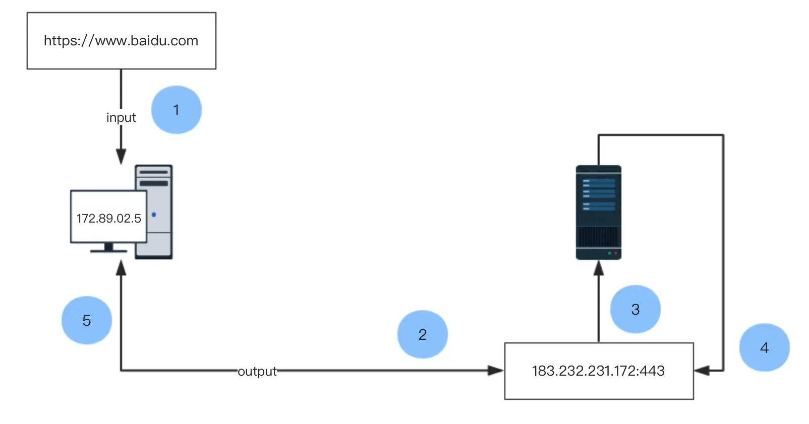 程序输入的是 https://www.baidu.com,但最终要解析出具体的 IP 地址和端口号才能访问,例如 183.232.231.172:443。