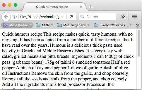 在 HTML 基础部分,我们讨论了如何在 HTML 中标记基本的列表,但是我们没有提到你偶尔会遇到的第三种类型的列表—描述列表 (description list) 。这种列表的目的是标记一组项目及其相关描述,例如术语和定义,或者是问题和答案等。让我们看一组术语和定义的示例: