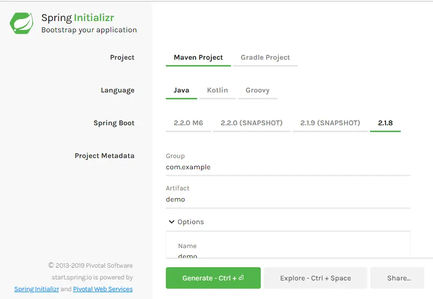 SpringBoot:2.1.8.RLEASE(截止2019.9.28)