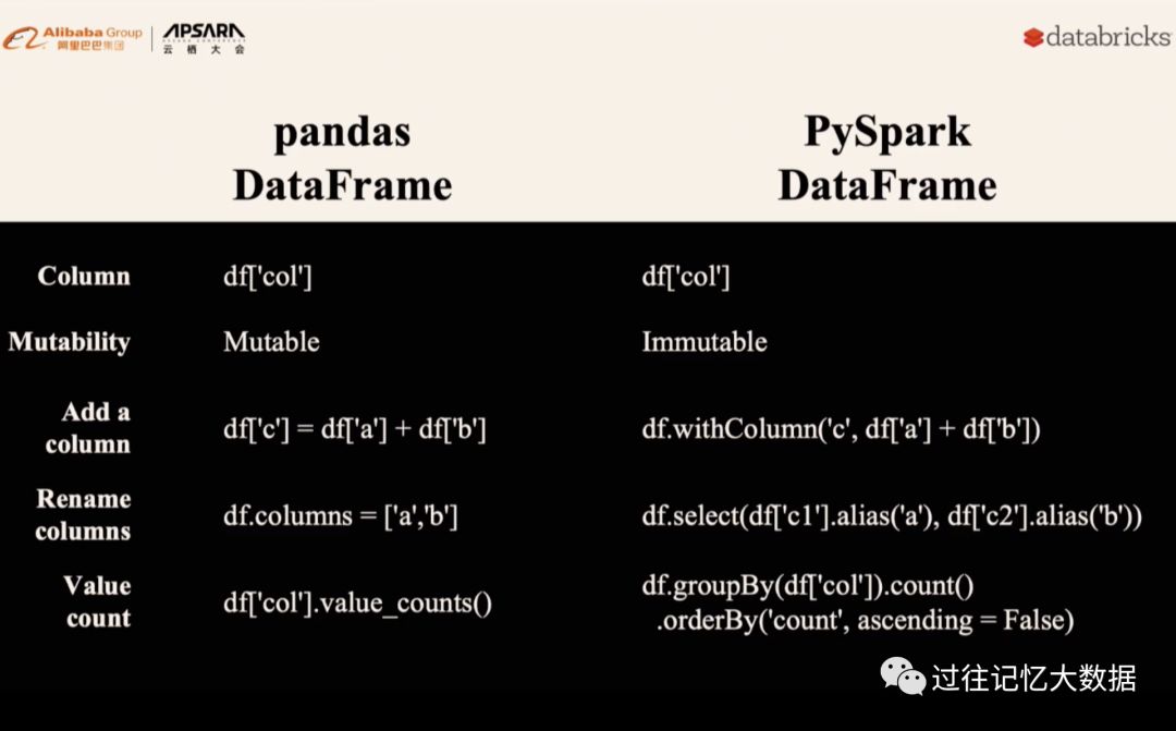 下面是 PySpark DataFrame 和 pandas DataFrame 的区别: