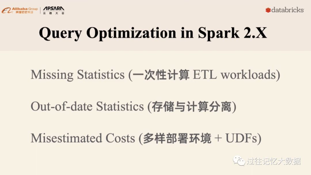 在 Spark 2.x 里面加了基于代价的优化,但是这个并不表现的很好。主要有以下几个原因: