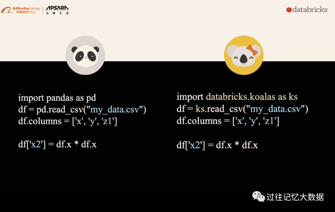 可以看出,PySpark 相比 pandas 来说使用起来还是很麻烦,使用 pandas 的用户不得不学习新的 API,但是有了 koalas ,这个问题不存在了: