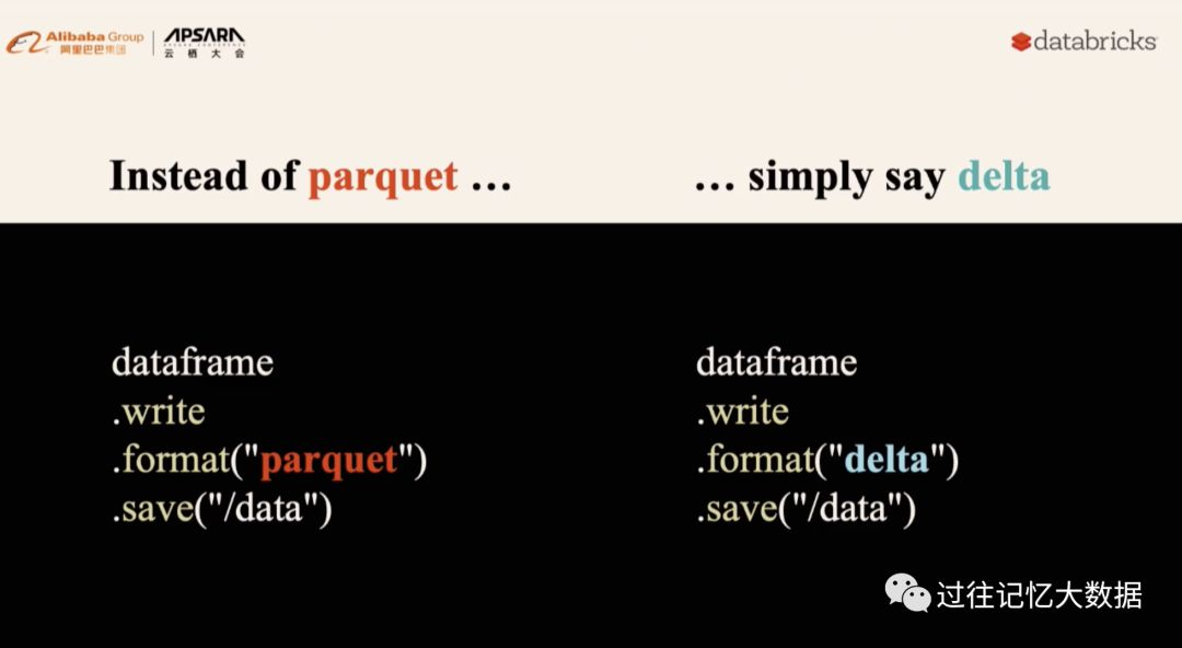 Delta Lake 并不是凭空产生的,而是基于成千上万的用户痛点总结出来的。Delta Lake 的使用也很方面,直接把 parquet 替换成 delta: