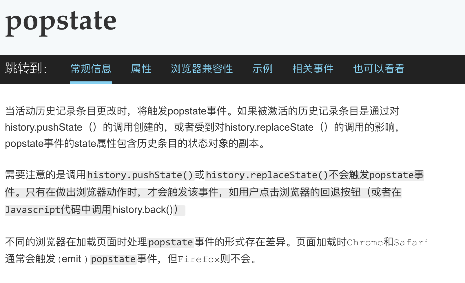 所以当历史记录条目变更时,就会触发popState事件。