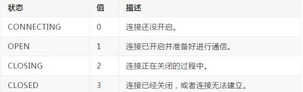 WebSocket实例对象类似于XHR有个的只读属性 readyState来指示连接的当前状态: