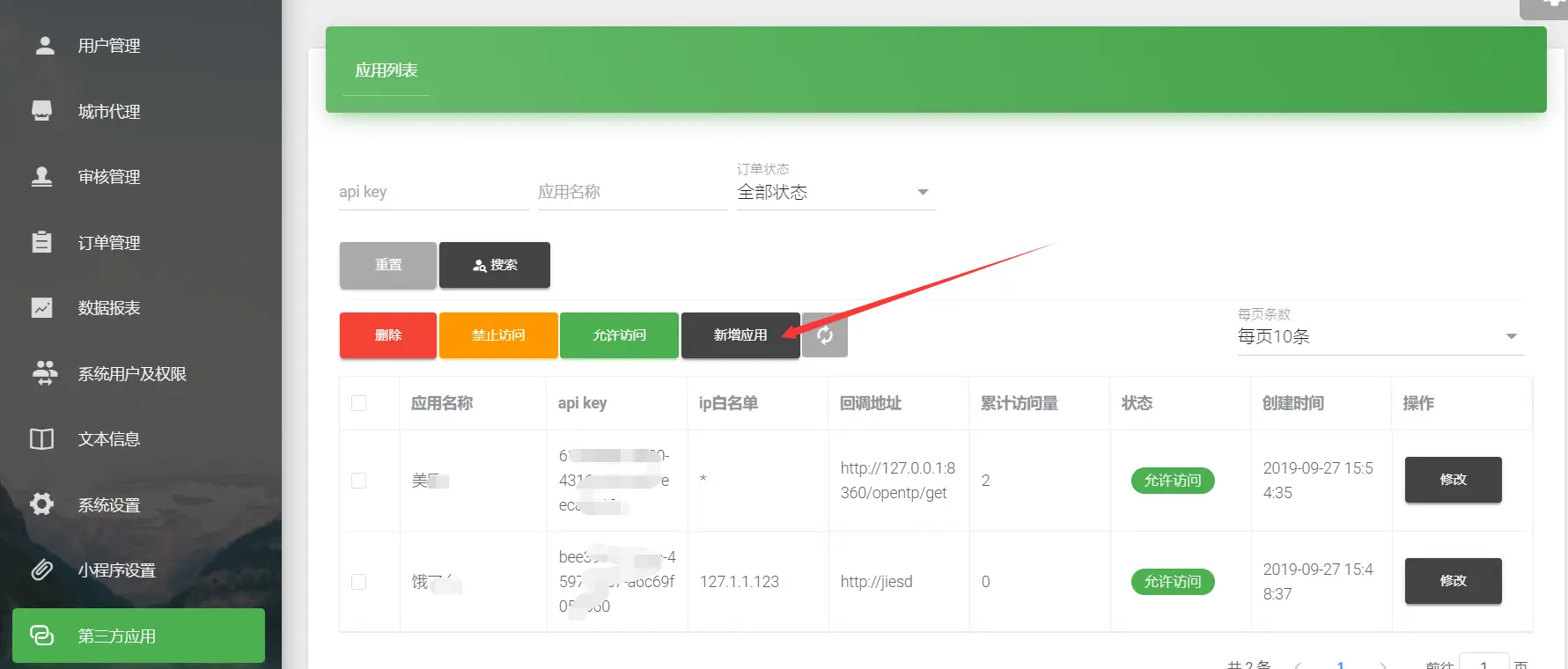 - api_key:系统自动生成-将作为第三方应用唯一识别