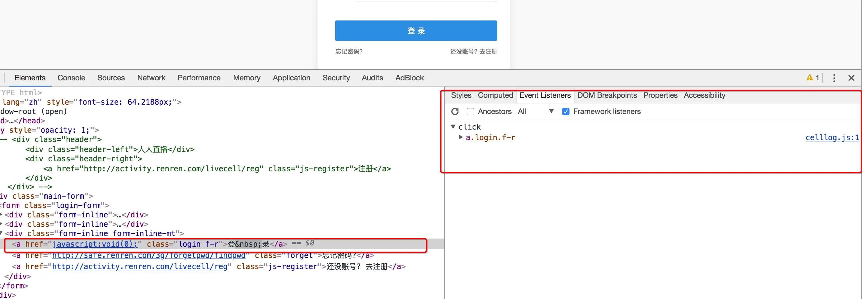 - 通过在chrome中观察元素的绑定事件可以确定js