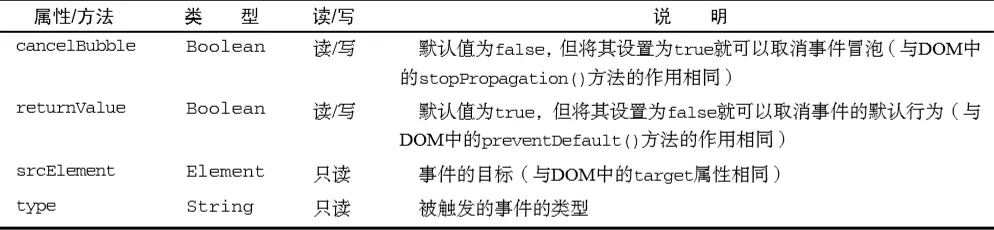 IE的 event 对象包含与创建它的事件相关的属性和方法