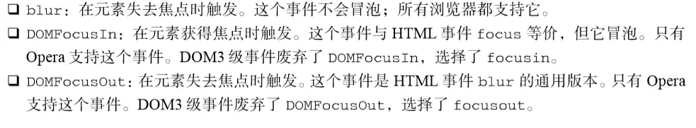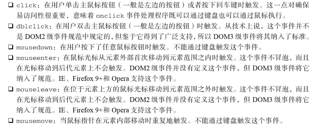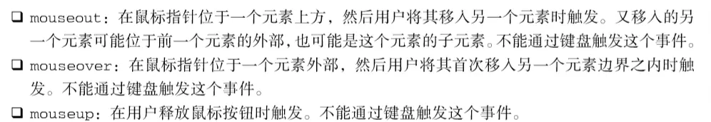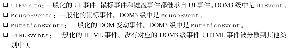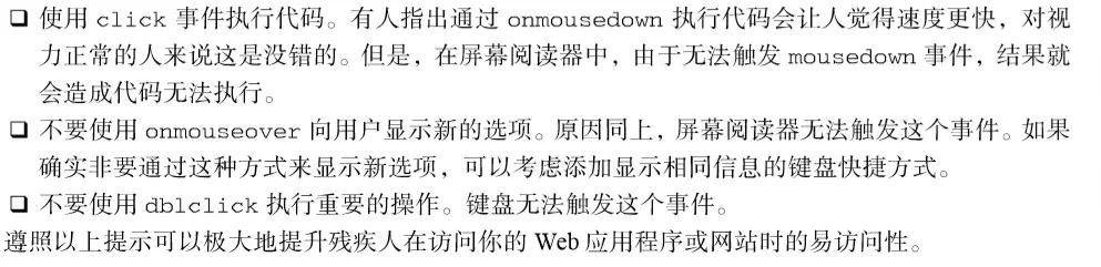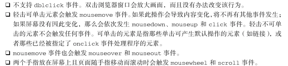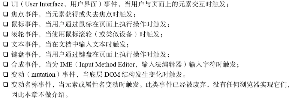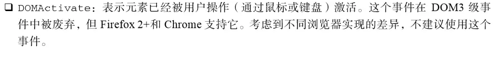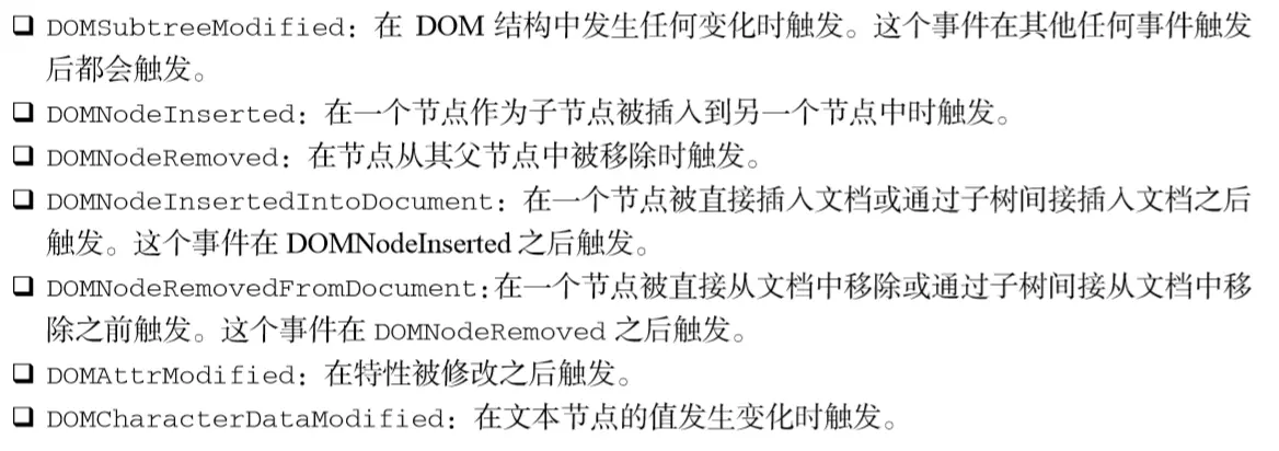 浏览器中很少使用变动事件和 HTML事件,因为使用它们会受到一些限制。