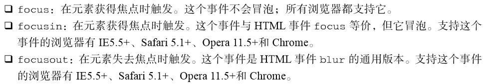 除了DOMActivate 之外,其他事件在DOM2级事件中都归为HTML事件(DOMActivate 在DOM2 级中仍然属于 UI事件)