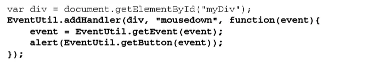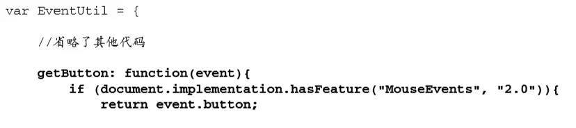 getEvent(),它返回对 event 对象的引用。考虑到 IE中事件对象的位置不同,可以使用这个方法来取得 event 对象,而不必担心指 定事件处理程序的方式
