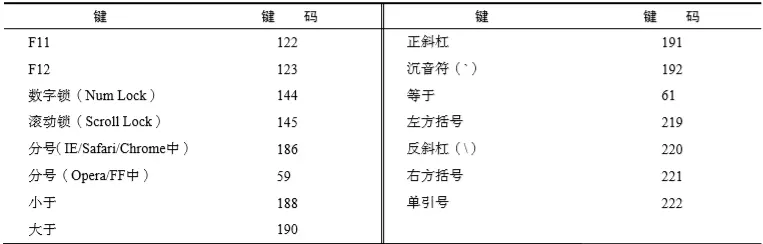 在 Firefox 中,调用 createEvent()并传入"KeyEvents"就可以创建一个键盘事件。返回的事件 对象会包含一个 initKeyEvent()方法,这个方法接受下列 10个参数