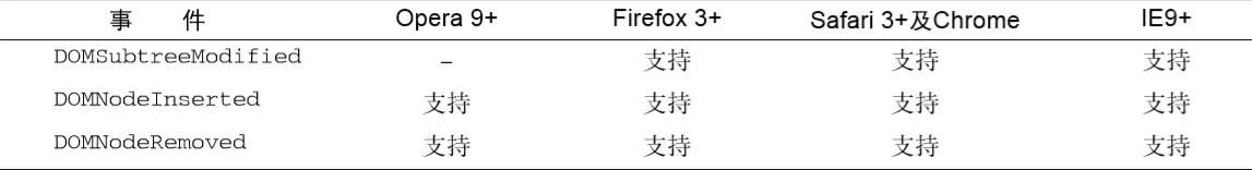 IE9、Opera、Firefox、Chrome和 Safari都支持 DOM事件流;IE8及更早版本不 支持 DOM事件流。